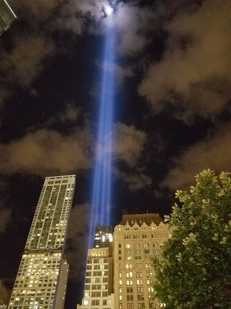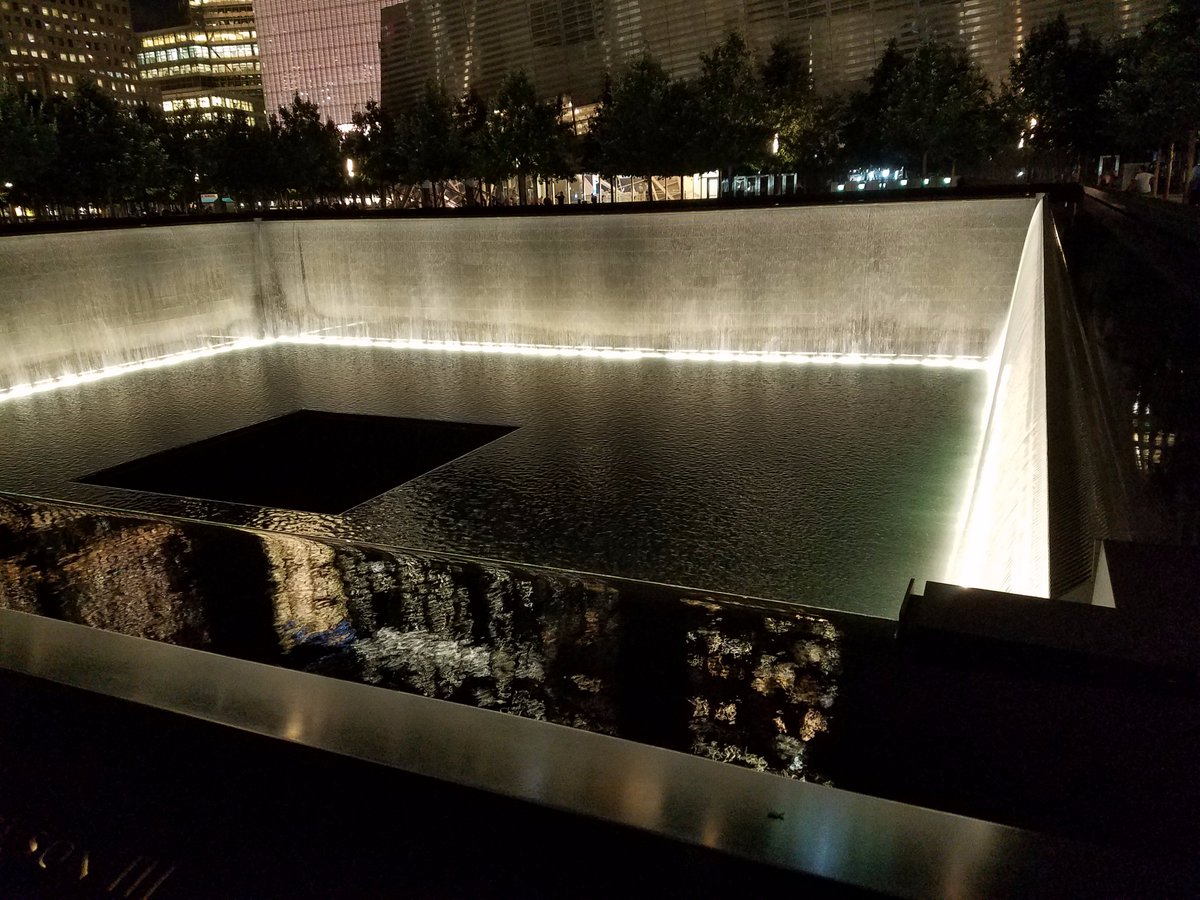 #neverforget. Taken the other night by me. The 911 Memorial is both haunting and peaceful at same time.pic.twitter.com/nRHRUIq1Ps