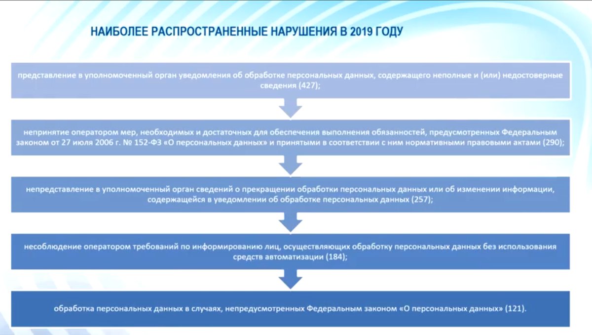 На дне открытых дверей по ПДн Роскомнадзор рассказывает про выявленные нарушения. Самые частые нарушения - без изменений. Эффективность проверок якобы растет. Существенно больше стали вносить в черный список сайты нарушители ПДн