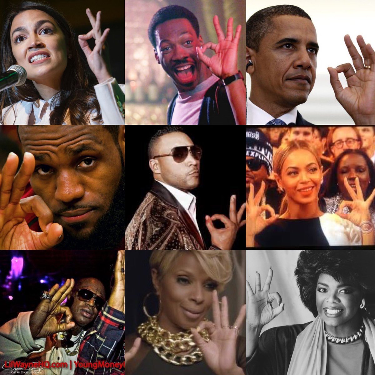 all of those pics the symbol is up obviously meaning ok, why do the white power wannabes hold it down? not the same but nice try