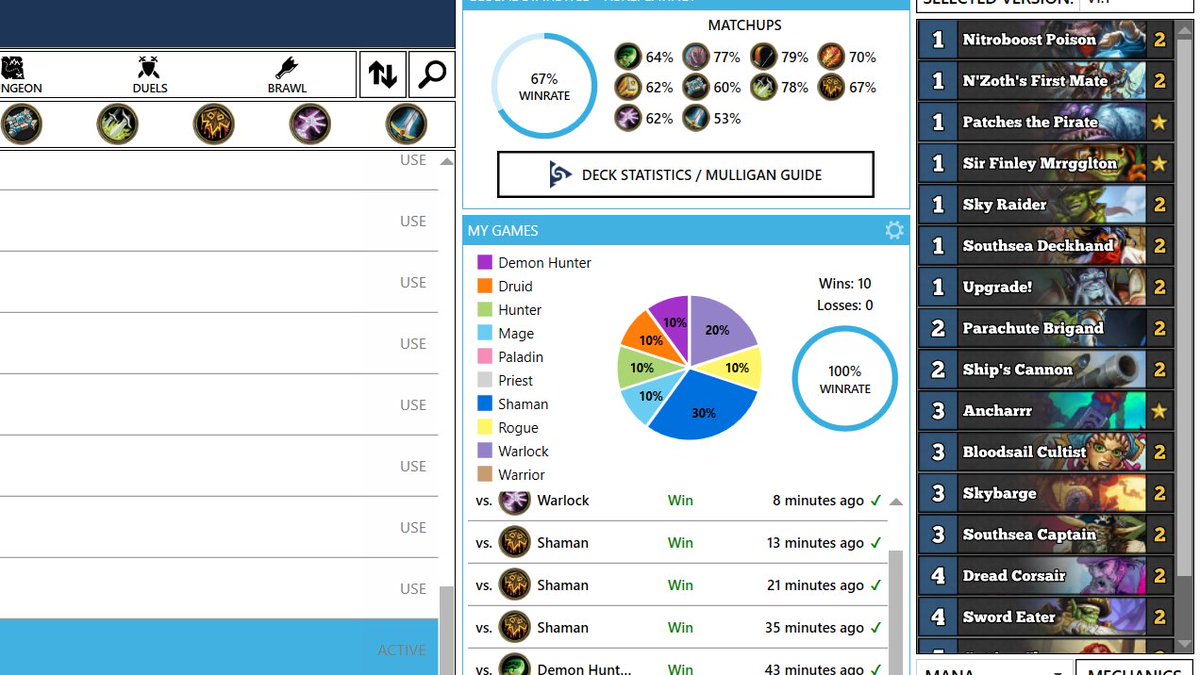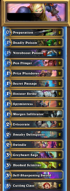 Second day legend with my weapon rogue list. Cut 2 deckhands for 2 prize plunderer and i'd say it's a pretty good add. Druid is hard, it's winnable if they don't draw the nuts and lethal turn 5. Warrior is winnable aswell if you aggro early. Had a lot of fun playing this listpic.twitter.com/Rd3cb5dgnD