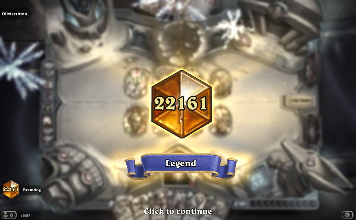 Just hit legend for the first time! Thanks so much to @MeatiHS for his Warrior list and mulligan guide, it helped me Immenselypic.twitter.com/4bUHlIBrfL