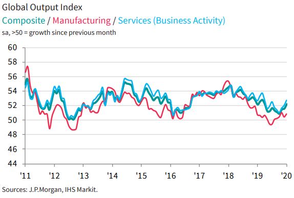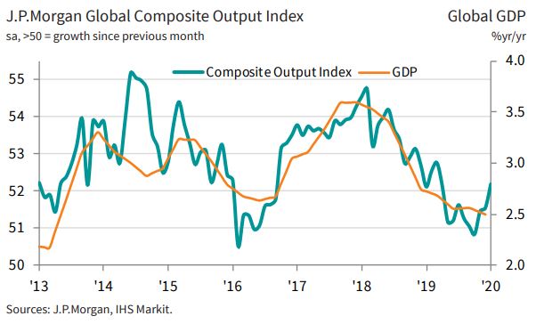 Global Composite PMI data gave further signals of global growth bottoming out at the start of 2020. Composite Output Index