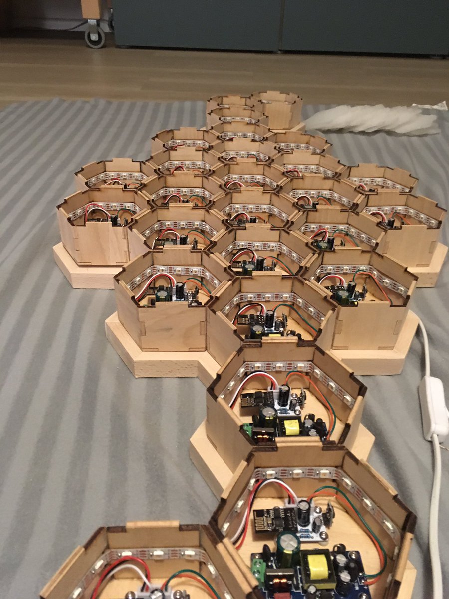 #hexlight auf einmal. Oben links das erste Mockup aus Pappe und unten rechts die aktuellste Versionpic.twitter.com/uu328Z3qhi