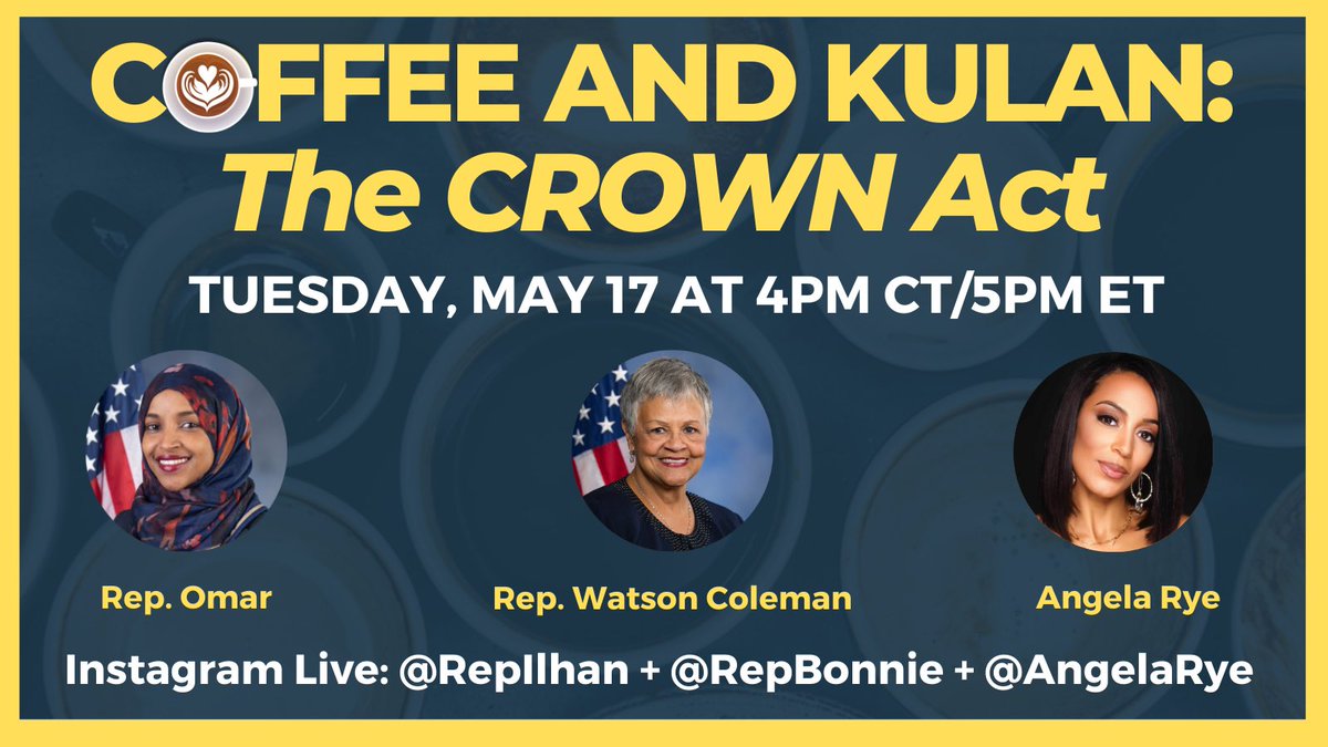 Hair discrimination must end. On Tuesday, we’ll be hosting a “Coffee and Kulan” discussion on the CROWN Act with