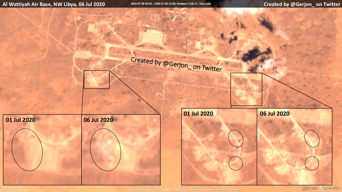 #Libya since the Sunday night 'air strike'. Area SW, close to where Turkish air defenses were allegedly recently added, show clear changes (likely damage). Smaller areas in the SE also show changes.pic.twitter.com/lrh9IwmUos