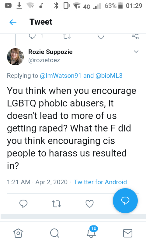 I get called a lot of really nasty shite on here. But I think this one takes the cake. Tonight, I was accused of hating trans people so much, I'm literally working to get them raped. Yes, really. https://twitter.com/rozietoez/status/1245506243638071296 …