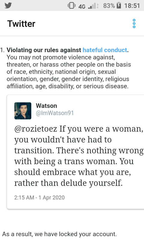 Total pain in the arse - he also blocked me after I said TW are TW and women’s sex-segregated spaces must be protected. So infuriating