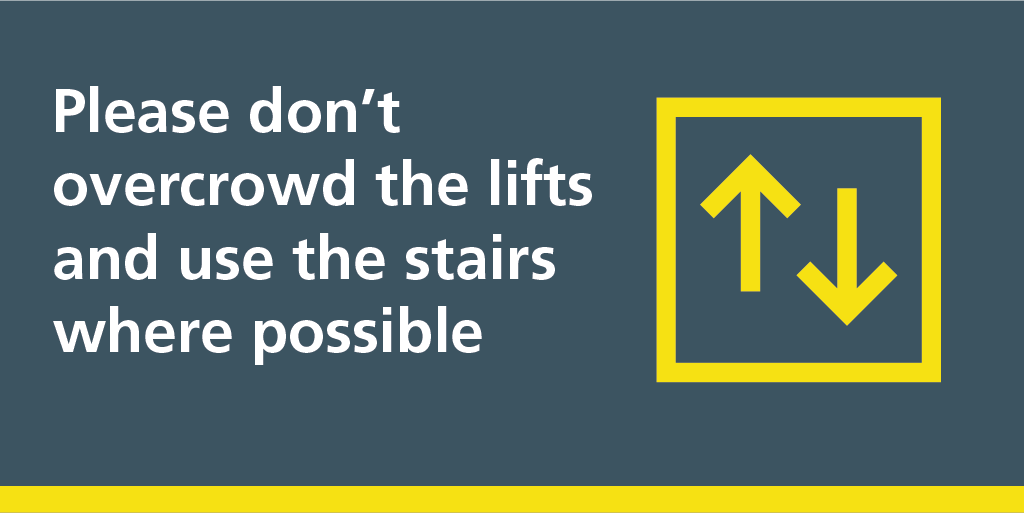 Please don't overcrowd lifts and use the stairs where possible. If you must use a lift with others, make sure:
