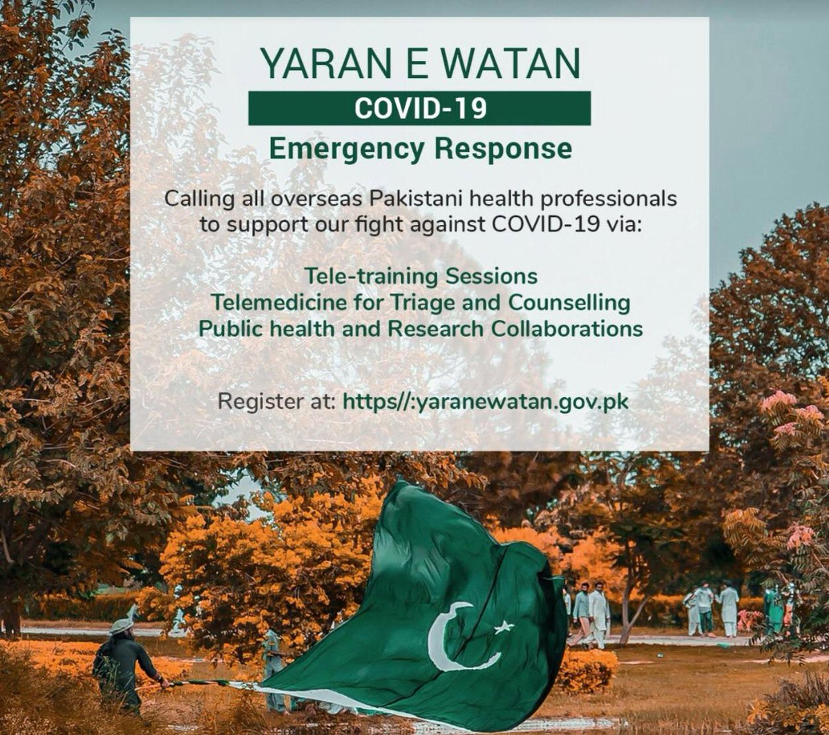 #COVID19 across the world. They also want to help us combat COVID19 in Pak. We have launched@YaranWatan iniitiative for our overseas health professionals who can now register to volunteer their services.pic.twitter.com/O0MkyDMNDs