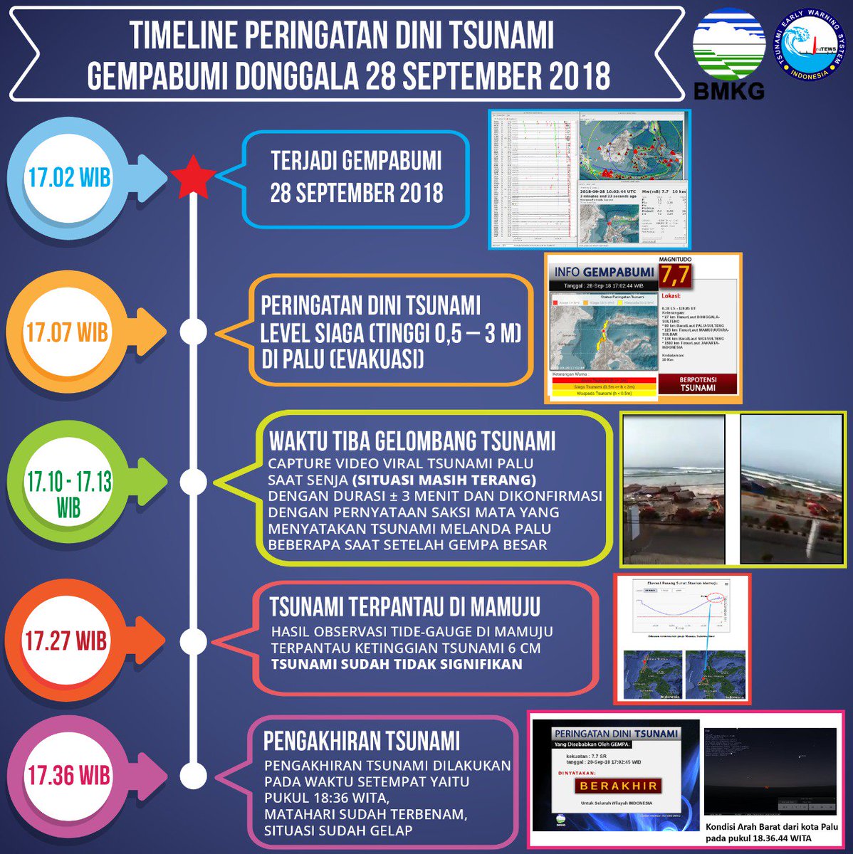 Timeline Peringatan Dini Tsunami Gempabumi Donggala 28 September 2018.