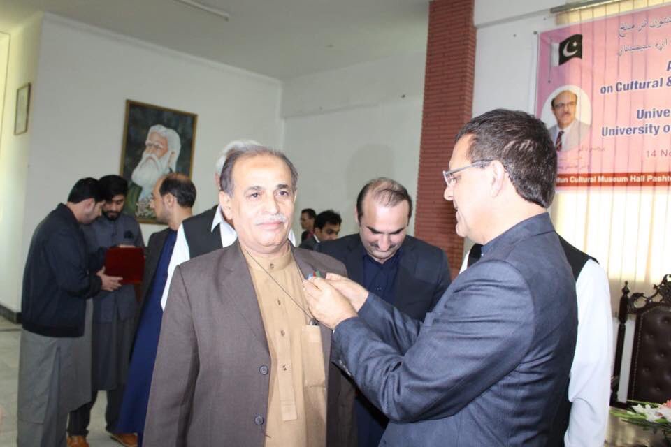 Afghan Ambassador to Pakistan @DrOmarZakhilwal awards Pashtun intelligentsia, writers,scholars & artists in Pakhtunkhwa wid Presidential Medals sent by the Afghan President House Kabul. Afghan Government acknowledges the services of these great Ppl for Pashto language & Culture!pic.twitter.com/2FdCzfndrQ