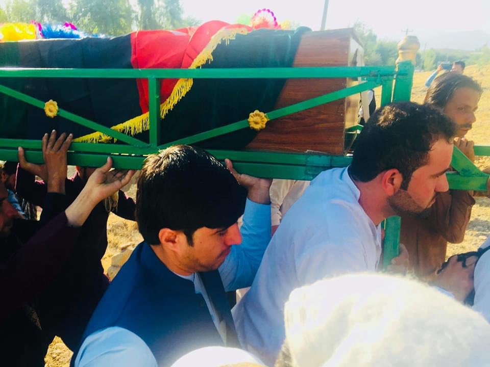 تېره ورځ د ډيورنډ په کرغېړنه کرښه د افغان ځواکونو او پنجابي رياست ترمنځ په مخامخ نښته کې د لوی افغانستان ملي اتل بریدمل عبدالحليم لغمانی په شھادت ورسېد۰ د ګران ملګري @sial_ghurzang په مشرۍ همفکره ملګرو او زرګونه هېوادوالو یې په پوره درناوی جنازې مراسم ترسره کړل.pic.twitter.com/fesfh9S6Dg