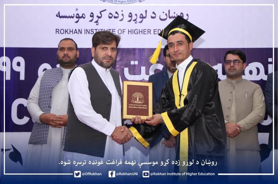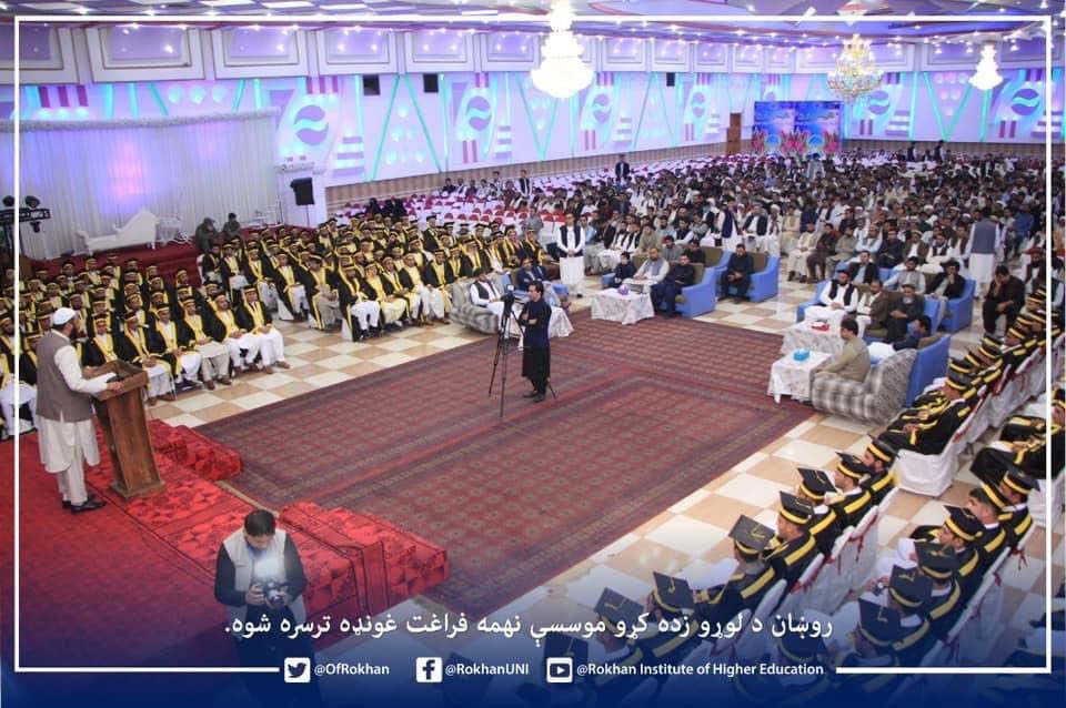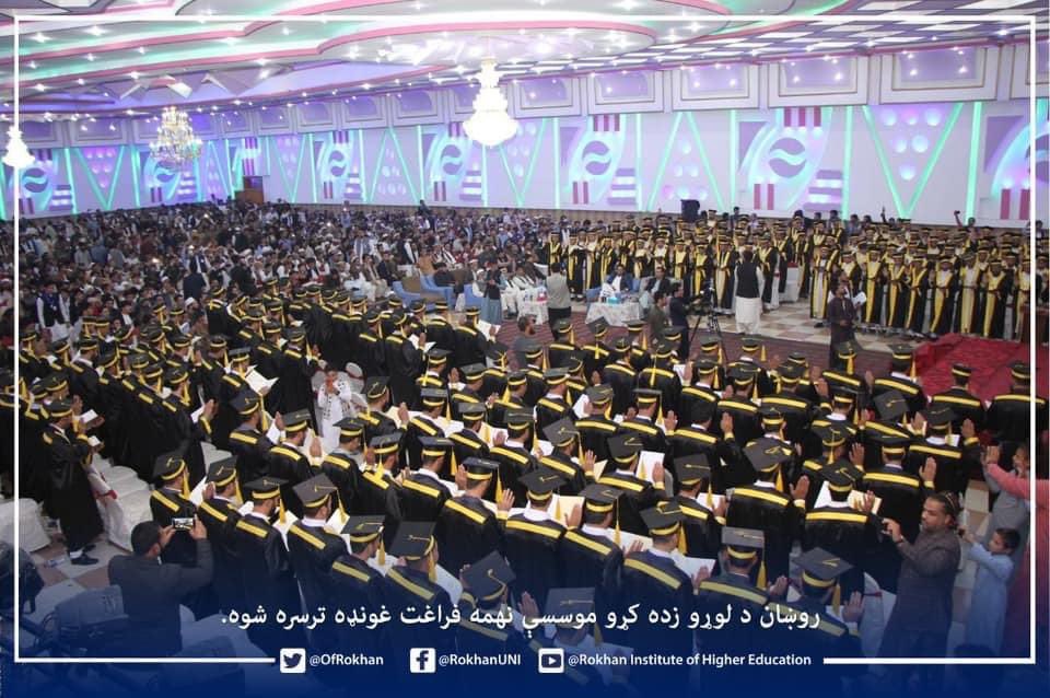د ننګرهار ولايت مرکز جلال اباد ښار کې د روښان لوړو زده کړو موسسې څخه په نهمه دوره کې له معالجوي طب، ستوماتولوژۍ، حقوق او سياسي علومو او اقتصاد پوهنځيو څخه لسګونه تنه د يوې سترې غونډې په ترڅ کې فارغ او پرې فراغت ليکونه وويشل شول.pic.twitter.com/FPScT06HtN