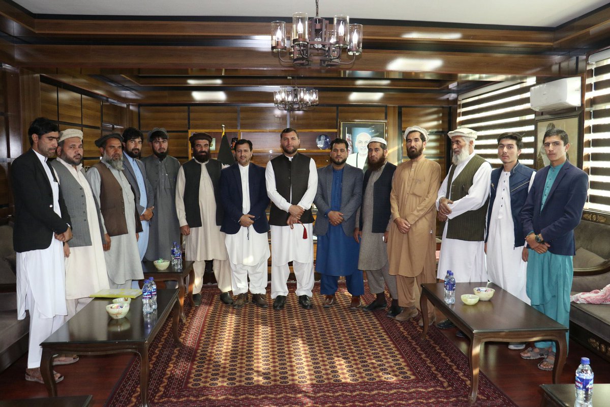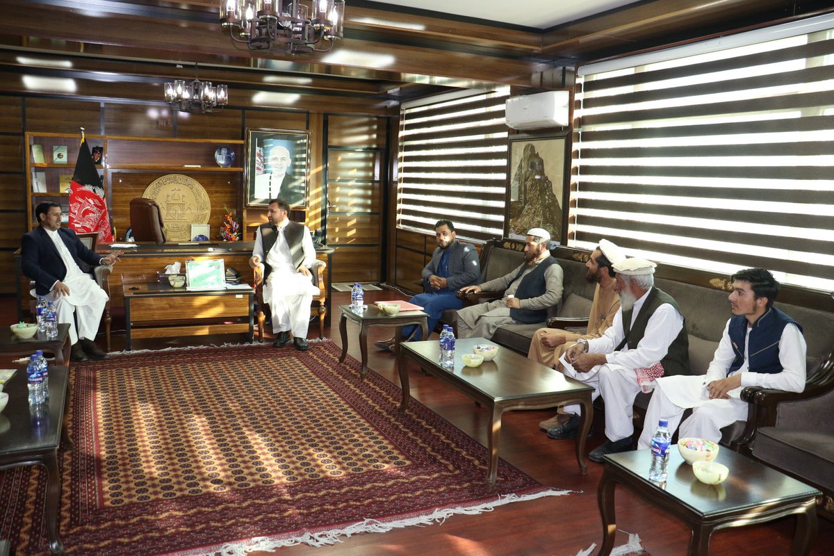 د ولسمشر ستر سلاکار او د ننګرهار والي @ZiaulhaqAmarkhi د لړم په ۱۸مه ولايت مقام کې د سولې غږ ټولنې مشر دوکتور نعمت الله ساپي او غړو سره په ليدنه کې ټينګار وکړ چې د ټولنې د هر قشر له لوري بايد د سولې غږ پورته شي، ترڅو ورور وژنه بس شي او په هېواد کې تلپاتې سوله او ثبات تامين شي.pic.twitter.com/KaYmpIShLJ