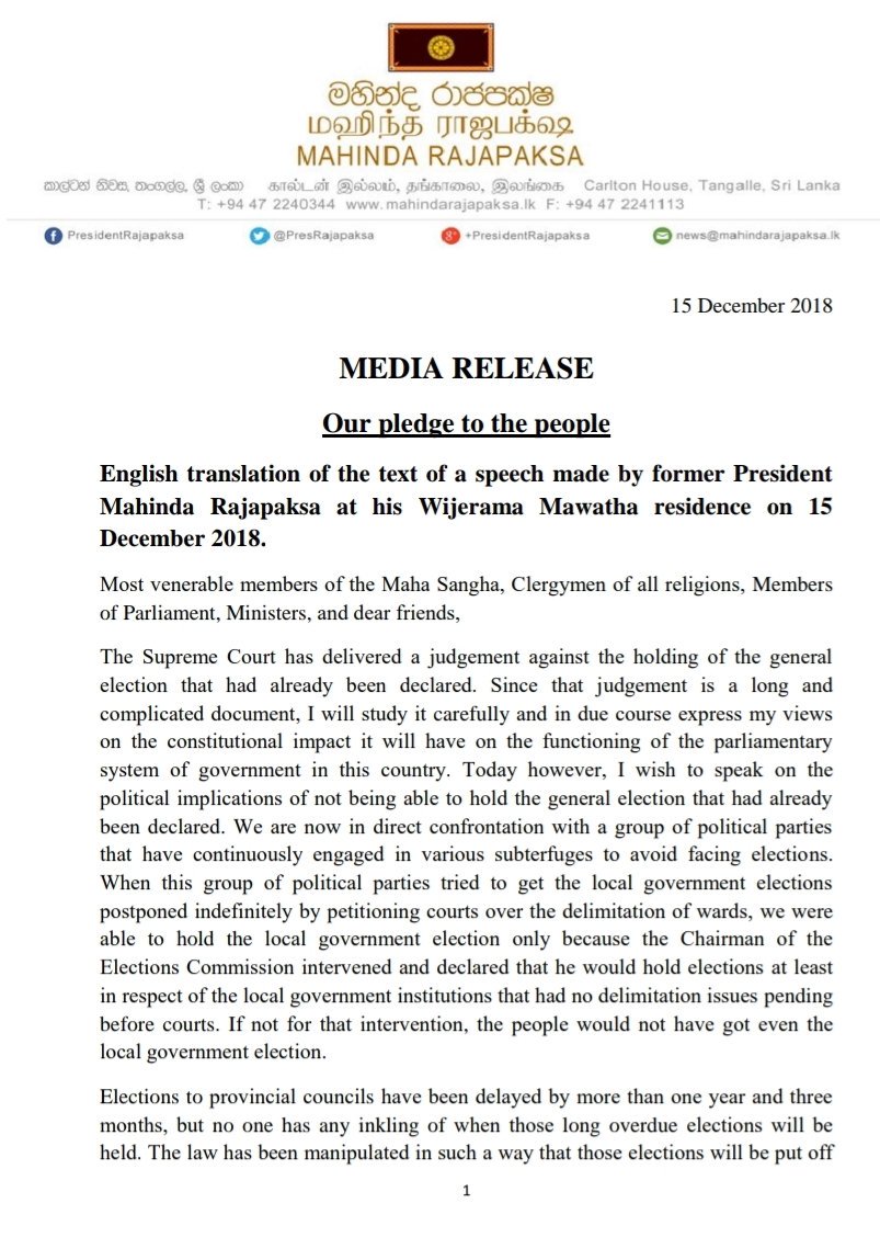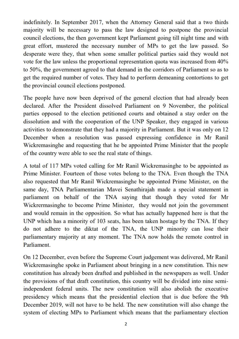 "UNP which has a minority of 103 seats, has been taken hostage by TNA. If they dont adhere to the diktat of the TNA, UNP minority can lose their parliamentary majority at any moment. TNA now holds the remote control in Parliament" Former President Rajapaksa resignation statementpic.twitter.com/Wv3RQtlxDW