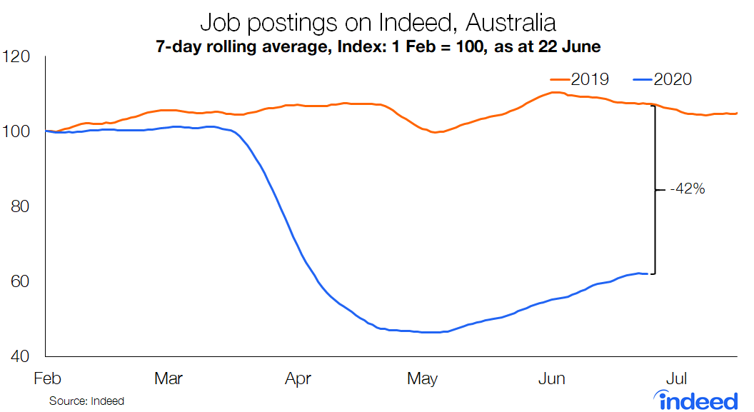 @IndeedAU Indeed shows that hiring activity has since improved. Currently tracking around 42% below last year's trend but making up ground daily#ausbizpic.twitter.com/2azGdG81q1