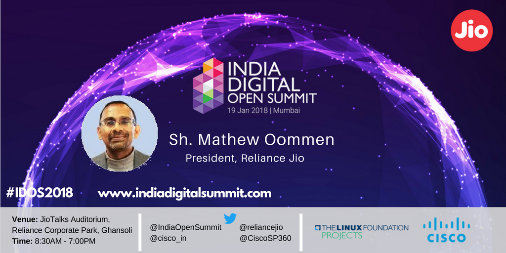"This summit is both a platform and an opportunity created with the sole thought of fostering greater innovation as a community" Mathew Oommen, President, Reliance Jio #IDOS2018 @RelianceJio @Cisco @Cisco_in @linuxfoundation @JioChatpic.twitter.com/RAMFChMgNr