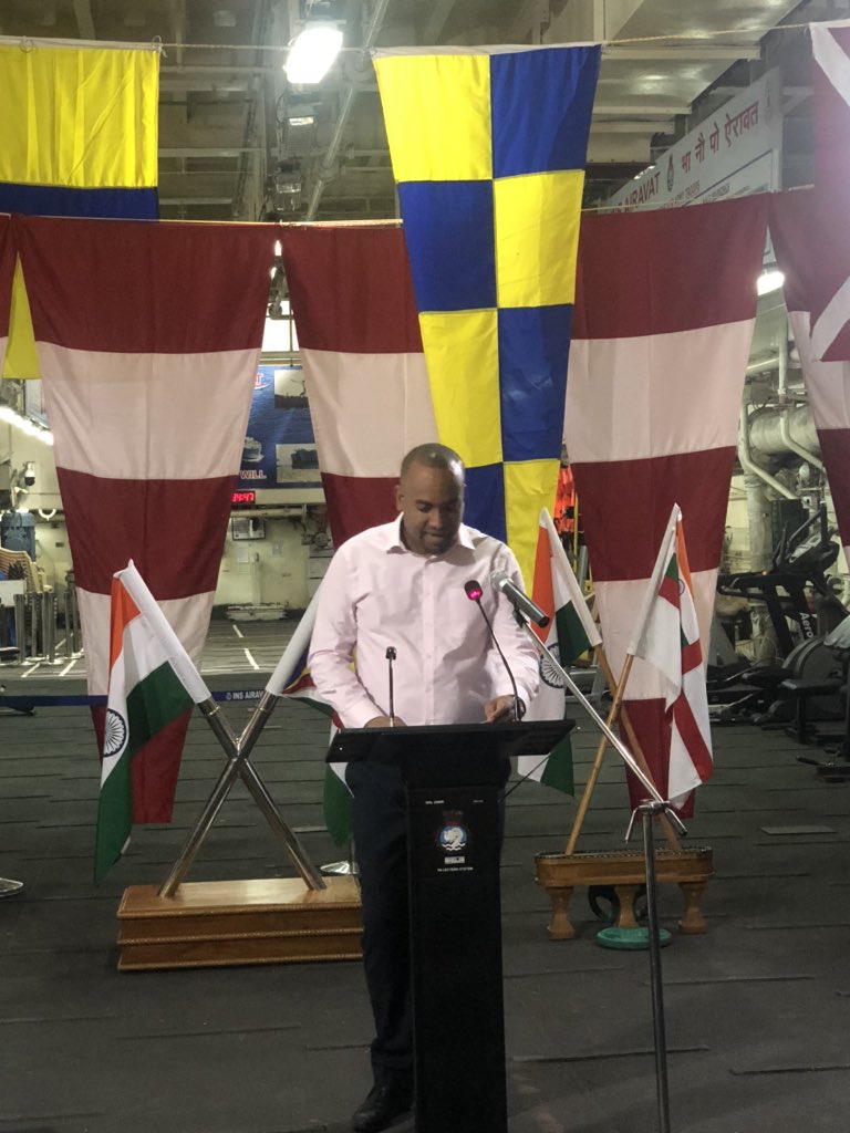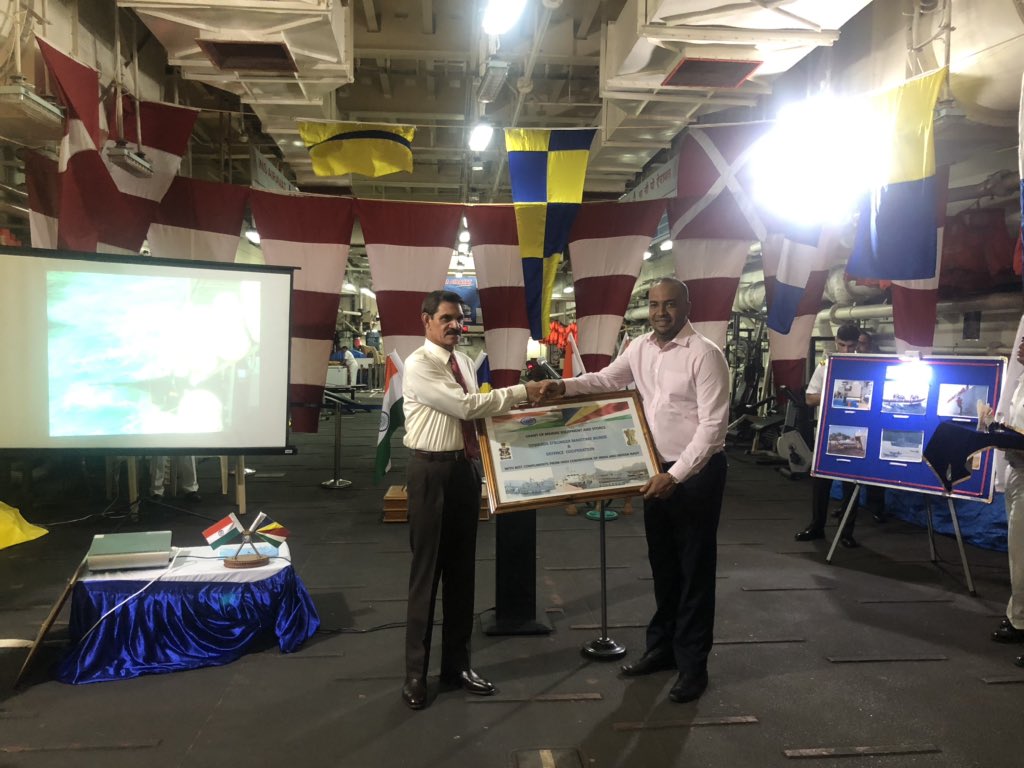 #INSAiravat reached#PortVictoria on Tuesday transshiping the two Patrol Crafts gifted by Sri Lanka