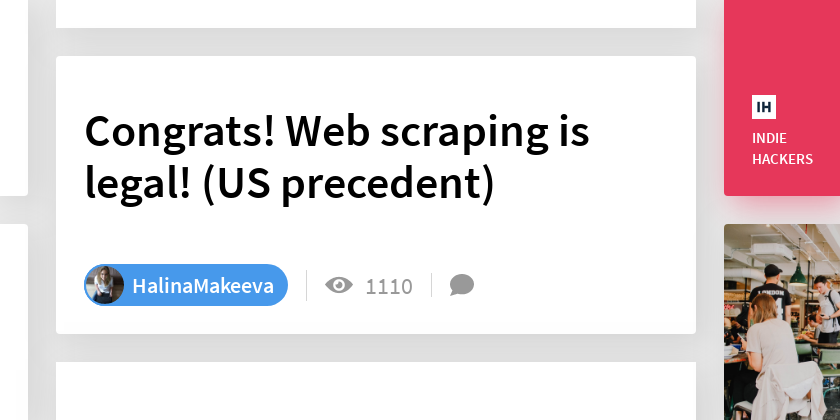 Web scraping is legal! (US precedent) - what does this change for indie hackers? https://buff.ly/2S4Kuns pic.twitter.com/mxF9TEFBsh