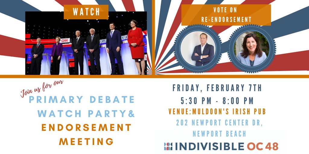 Friday debate watch party and endorsement meeting! RSVP so we can know how many appetisers to order!https://www.eventbrite.com/e/primary-debate-watch-party-endorsement-meeting-tickets-91744575495?aff=ebdssbeac …