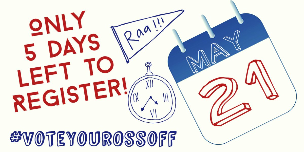 #voteyourossoff & tag a friend to remind them to register by May 21! Register Online http://bit.ly/GA6Register pic.twitter.com/3lTzKAjNJZ