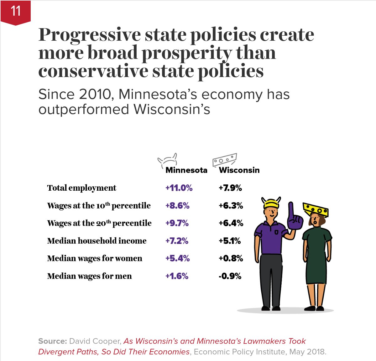 #Wisconsin and#Minnesota embarked on divergent political paths when voters elected a conservative,@ScottWalker as governor of WI and a progressive,@GovMarkDayton, as governor of MN. The data show MN had faster wage and employment growth. https://on.epi.org/2EKctEZ pic.twitter.com/7xJziNXUVq