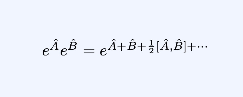 As a result, for two genera linearl operators A & B, we have that eᴬeᴮ ≠ eᴬ⁺ᴮ. Rather, it is given by BCH formula below. The dots on the right indicate an infinite number of nested commutators ( e.g. [A, [A,B]] ). There is no known closed form for this expression.pic.twitter.com/kMFayF9vzZ