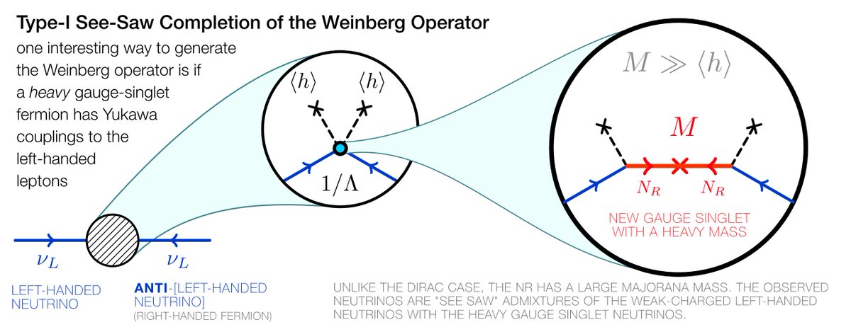 Remark: one way to generate the Weinberg operator is with a right-handed neutrino that has its own Majorana mass. This is the type-I see saw mechanism for explaining why the neutrinos are so light compared to the other Standard Model fermions. [5/4]pic.twitter.com/1emZ9Kd3qU