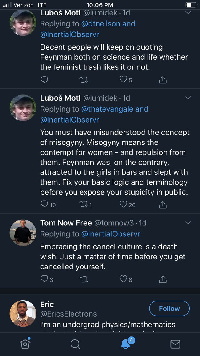 Deleted Feynman tweet cause he was a sexist