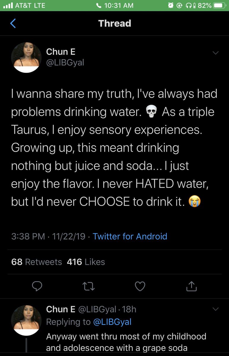 broke: i forget to drink water woke: i am destined by the configuration of the stars to not drink water