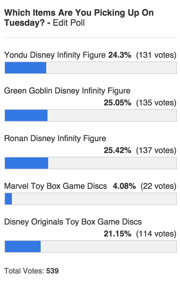 Interesting results about what Disney Infinity items people are picking up on Tuesday! Vote: http://infinityinquirer.com/2015/01/08/poll-big-disney-infinity-release-day-on-tuesday-what-are-you-picking-up/ …pic.twitter.com/nHAy0C0ddM