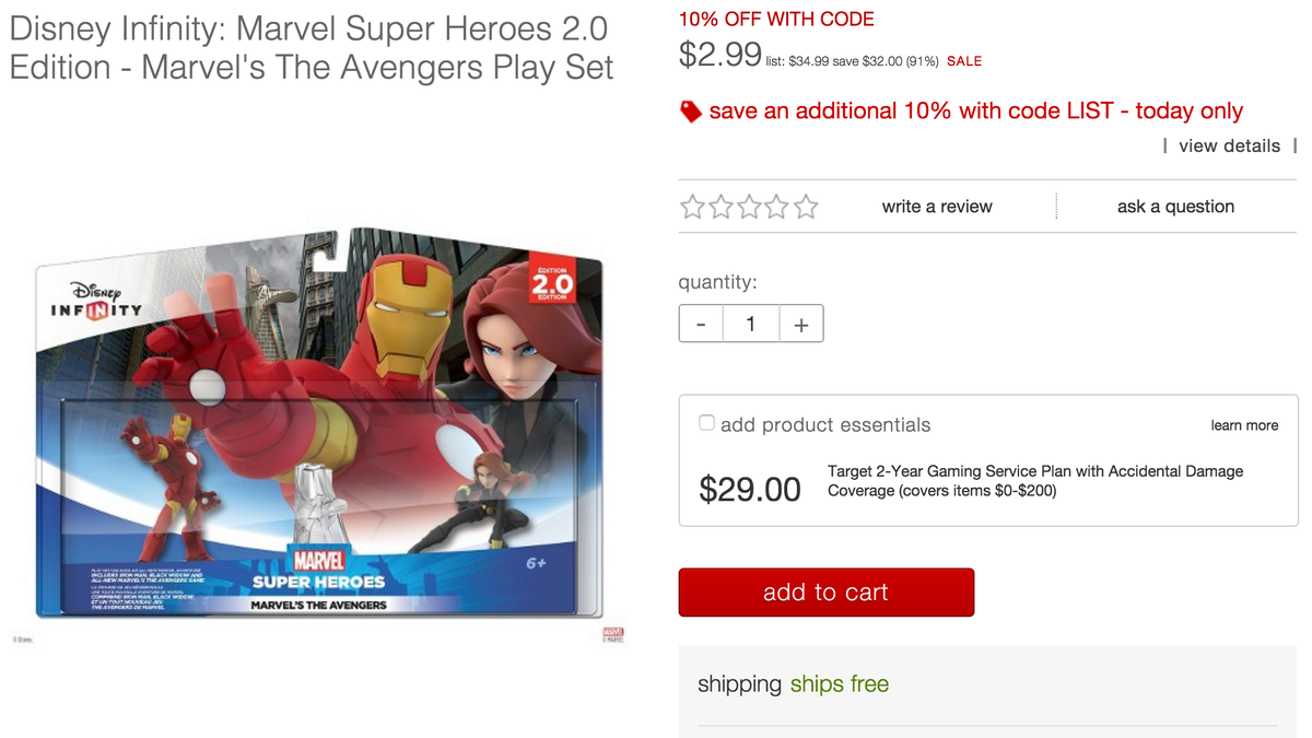 DEAL: @DisneyInfinity 'The Avengers' Play Set for $2.70 plus free shipping!