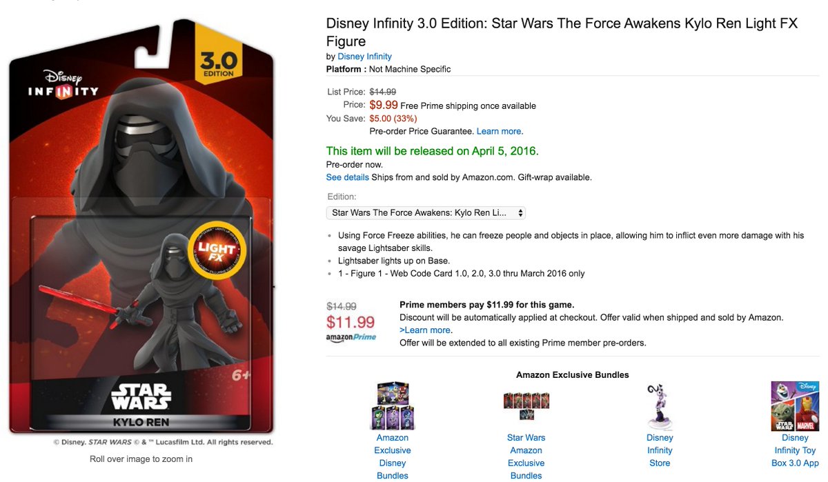PSA: Light FX Kylo Ren for #DisneyInfinity has dropped to $9.99 on Amazon! Link: http://amzn.to/1ZuEfpB pic.twitter.com/gCve6QqAwW