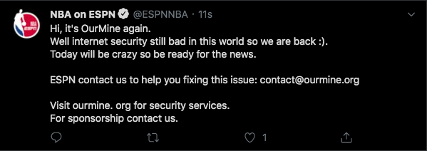 After NFL accounts yesterday, OurMine has now hijacked ESPN accounts. Tweets also appear to have been posted via a Khoros account, just like the NFL tweets yesterday.https://twitter.com/bubbaprog/status/1222255026518876165 …
