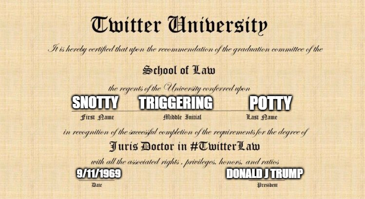 Tis a great day to troll democraps. I got my law degree ready for them.pic.twitter.com/mQGZCS2mXX