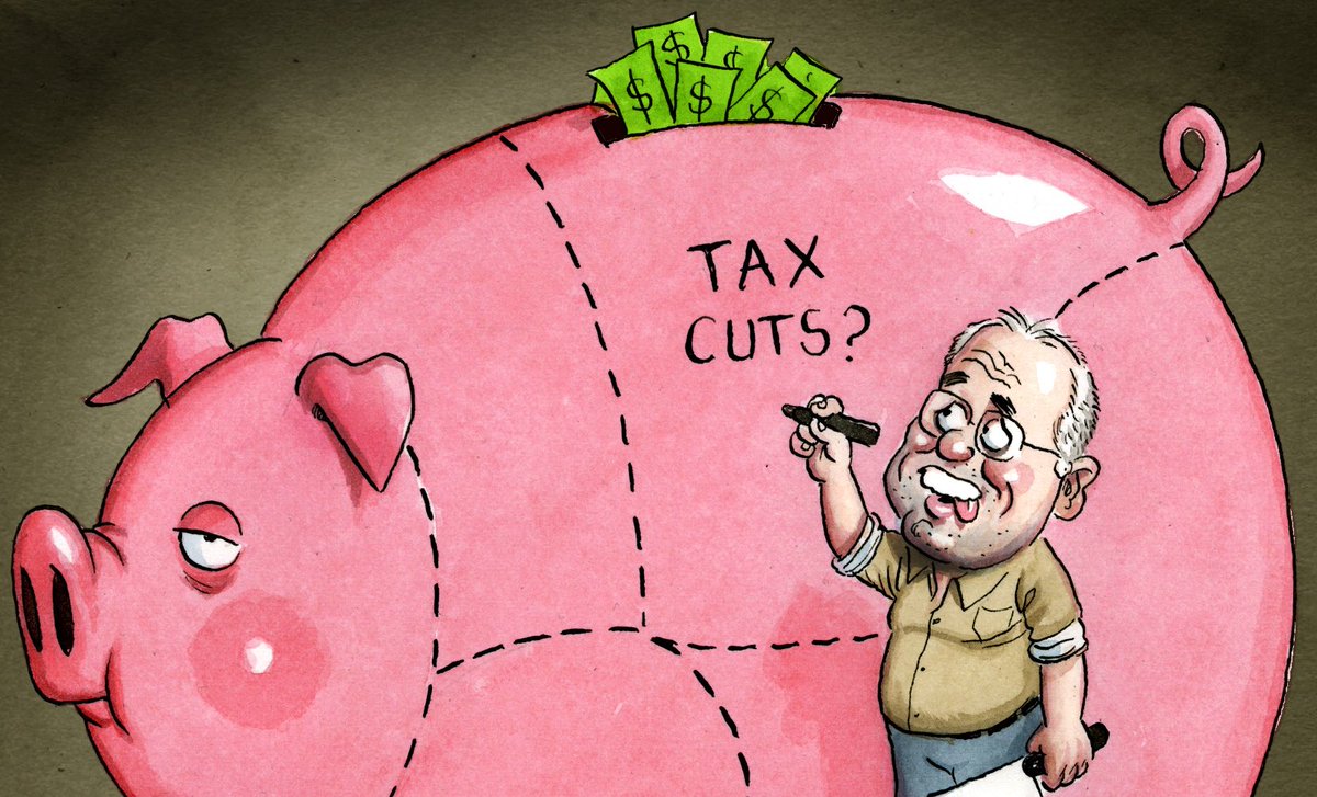 Morrison's dilemma. Awash with money, but not enough: http://goo.gl/ezw2Pc Me, on what tax cuts we'll get.