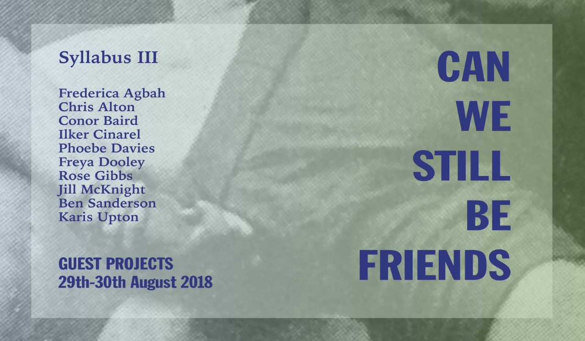 Opens tomorrow at Guest Projects: 'Can We Still Be Friends' group exhibition responds to the joy and tension of solo and collaborative practices as they rub up against one another. Preview: Tue 28 Aug, 6-10pm
