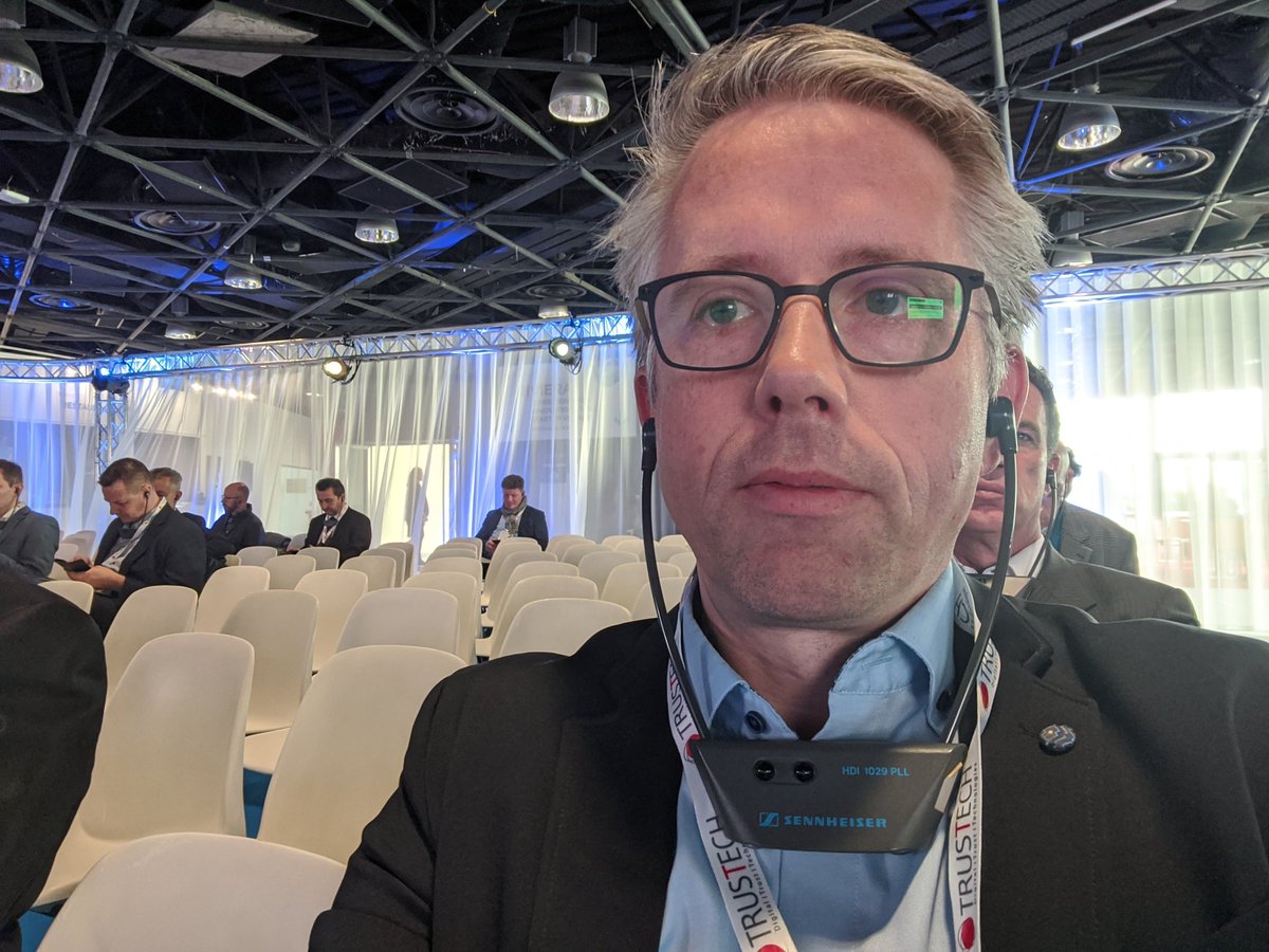 #TRUSTECH. With eIDAS and mobile. Everyone has a headset, to avoid noise, a first for me. Looks a bit silly, but works