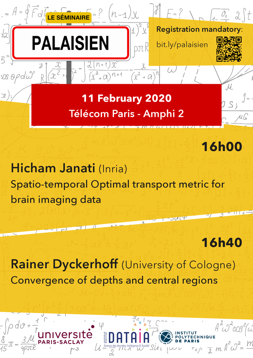 #LeSéminairePalaisien] Venez écouter@HichamJanati4 (doctorant@Parietal_INRIA) et Rainer Dyckerhoff (professeur@UniCologne) parler de#transportoptimal pour#neuroscience et de profondeur des données