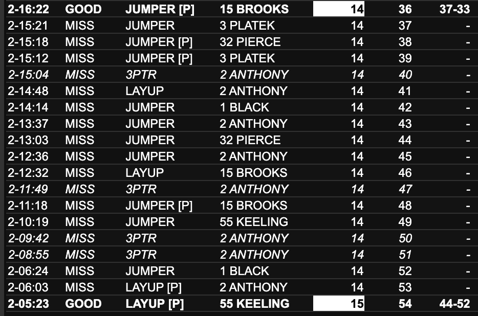 It's now eight minutes since UNC last made a field goal.