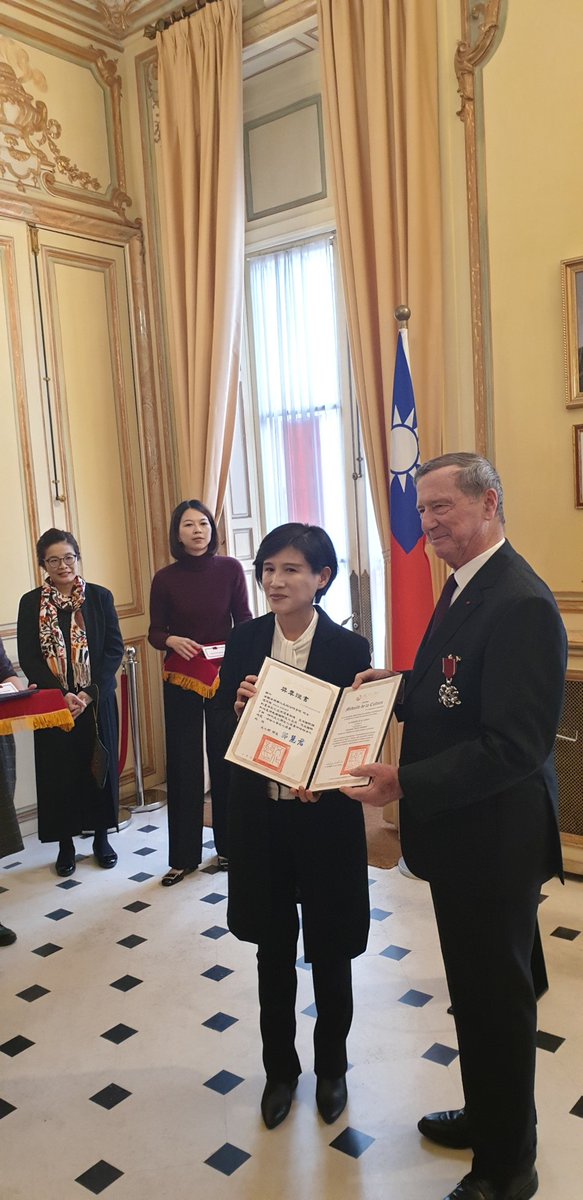 La ministre de la Culture de Taiwan, Cheng Li-chiun 鄭麗君 a décoré le secrétaire perpétuel Jean-Robert Pitte et le président de l'Académie Pierre Delvolvé. Ils remettront ce soir les prix aux lauréats de la fondation franco-taïwanaise.pic.twitter.com/d708QeHFpN