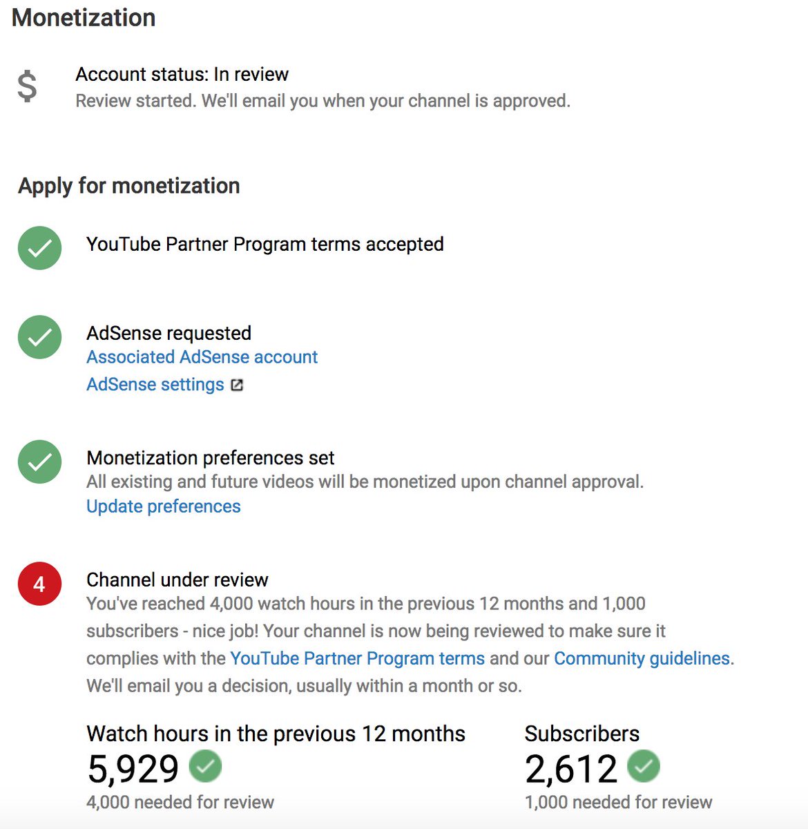 If you were eligible & applied before June 1st, you should have received an email update in Creator Studio with more information. If your application is being held for an additional review, then you'll get a second update in the near future! Latest update: https://goo.gl/2icqfh