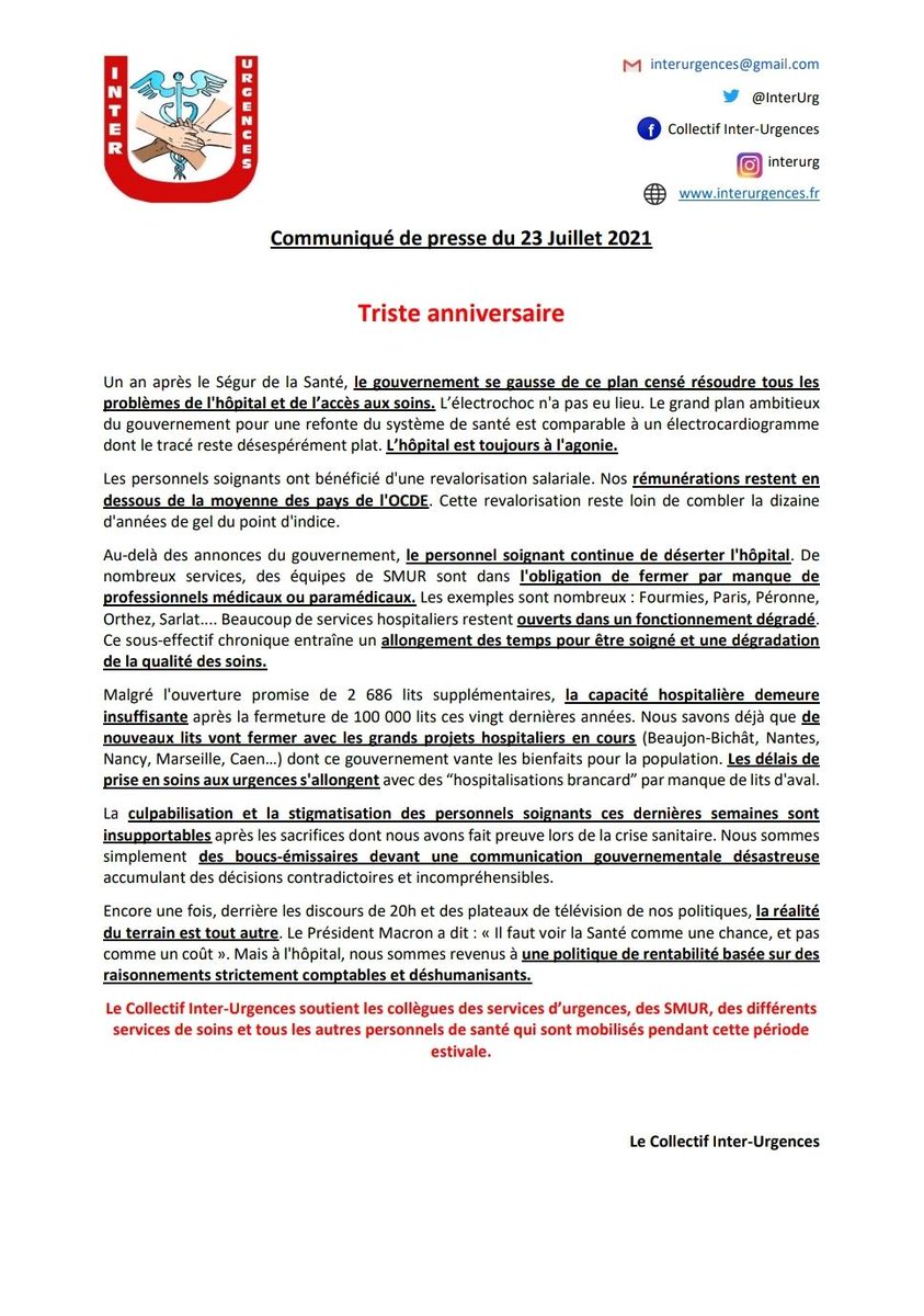 Alors que dans le même temps la pénurie de soignants entraînent de nombreuses fermetures de lits, de services et de lignes SMUR. C'est honteux ce qui se passe. Nous continuerons de nous battre pour la santé de tous !!!