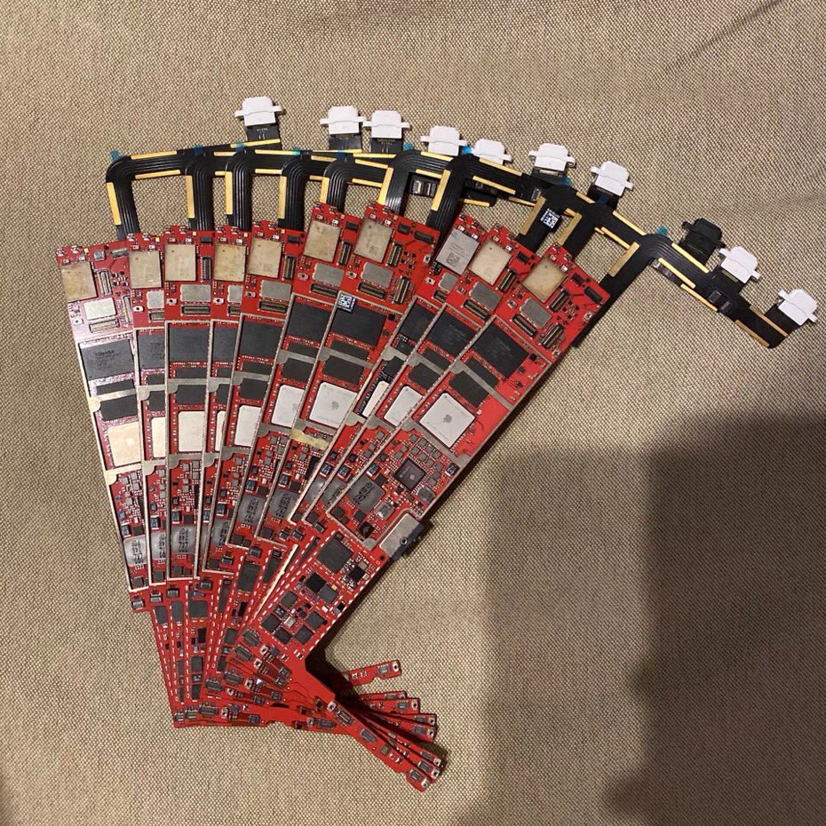Some very red PROTO1 iPad logic boards! I’ve never seen any this bright red before.
