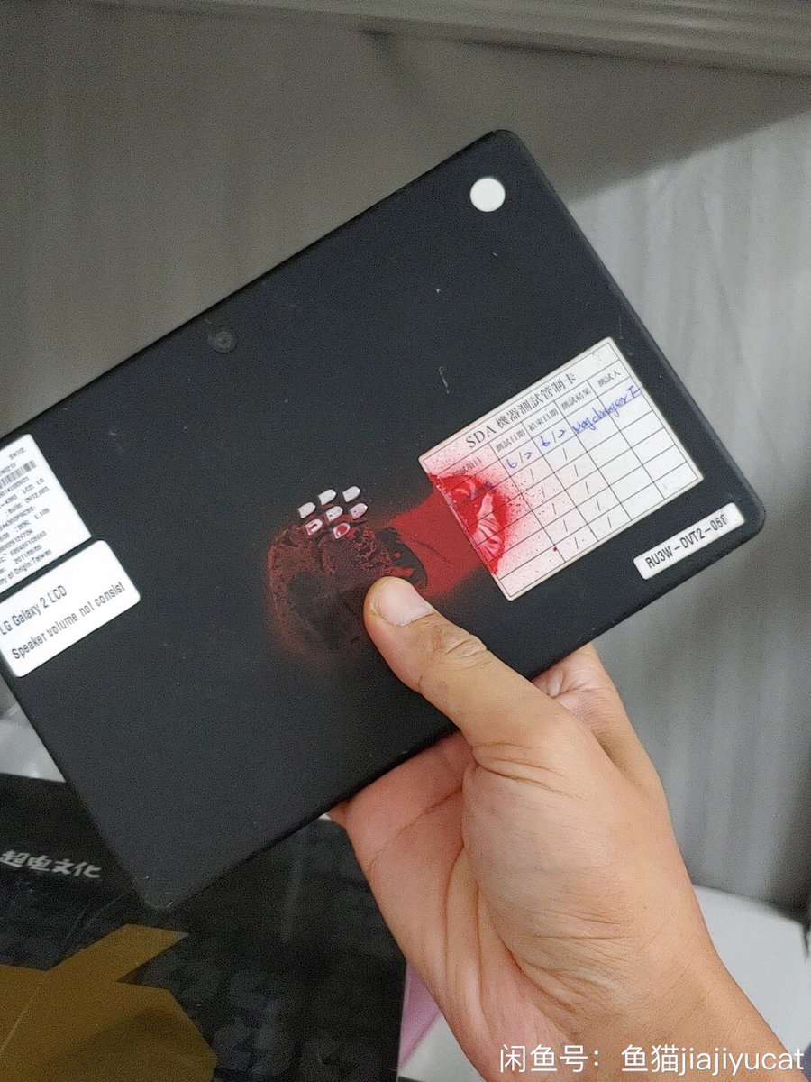 A really cool blackberry PlayBook prototype! Has stickers and markings, plus a bit of spray paint.