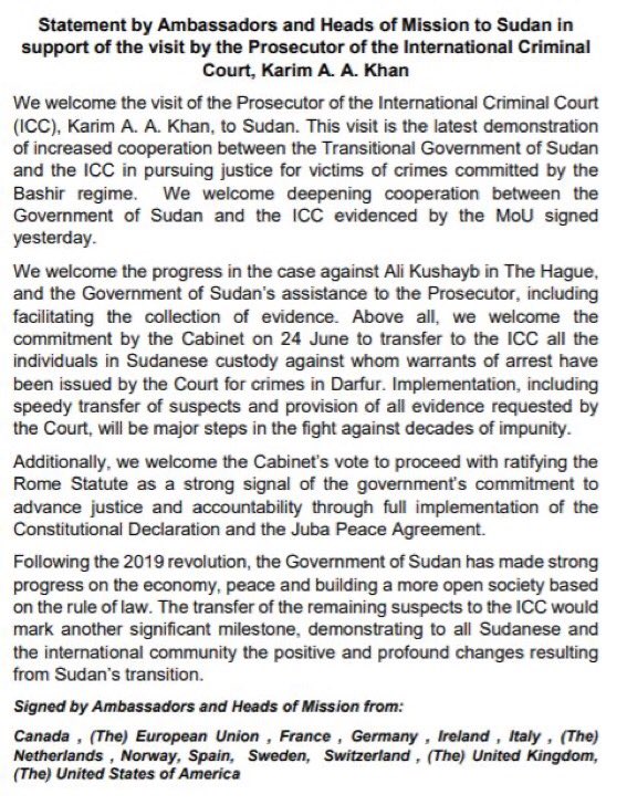 بيان سفراء ورؤساء بعثات دبلوماسية في السودان دعماً لزيارة المدعي العام للمحكمة الجنائية الدولية كريم خان.pic.twitter.com/UwNsvEkw40