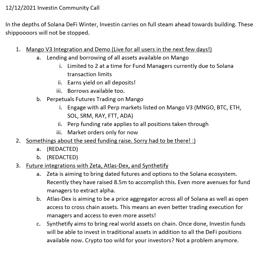 Investin fund managers please close your existing margin positions on Mango V2 in the next 24hrs for a smoother upgrade to Mango V3.https://twitter.com/theDeFiBat/status/1469040191985700864 …