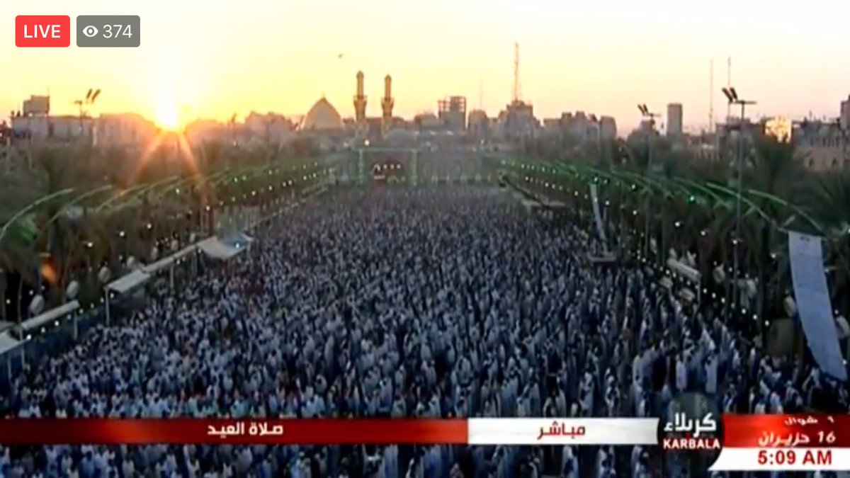 #EidAlFitr Prayer on Saturday in#Karbala at the shrine of#ImamHussain where thousands gather to mark the end of the holy month of#Ramadan#EidMubarak#Iraqpic.twitter.com/Ys00U4IX5B