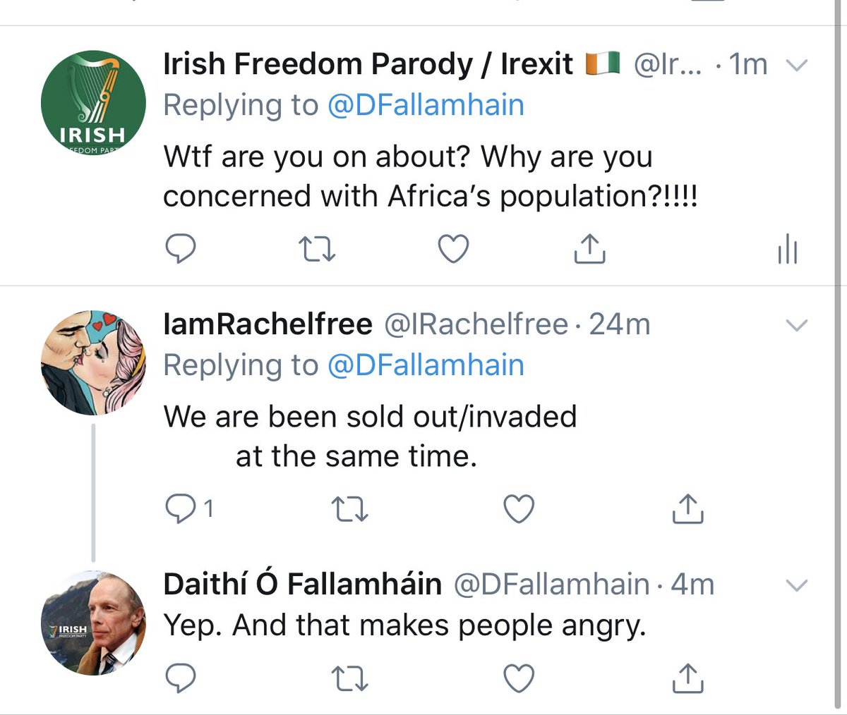 Irexit Party candidate seems to have a problem with people being born in Africa. Really Classy.pic.twitter.com/dva1BF86as