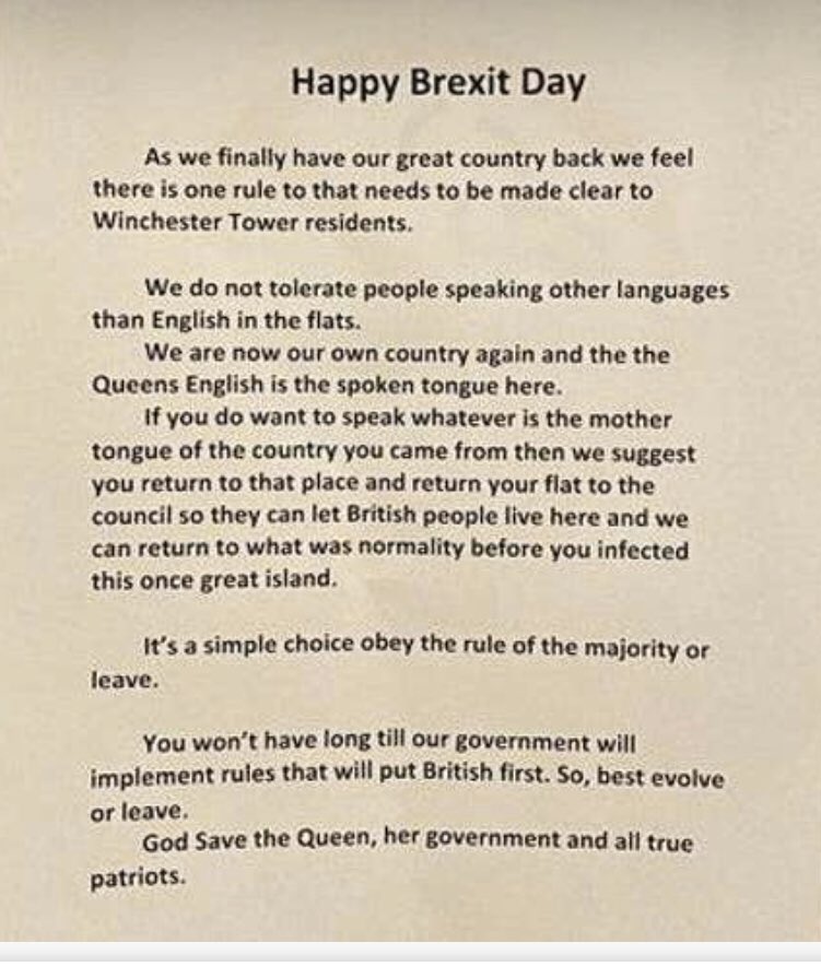 Change the word british to irish and you have the (Irexit, National Party and ACI) manifesto’s here - https://www.independent.co.uk/news/uk/home-news/brexit-day-racist-poster-speak-english-norwich-council-norfolk-police-a9313126.html …pic.twitter.com/6xdmXFNFzo